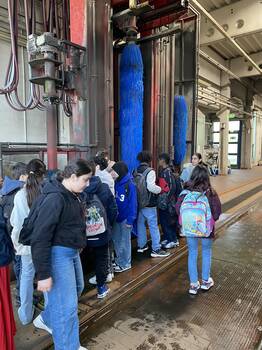 Die Klasse 5c hat am 19. März eine kleine Betriebserkundung auf dem Üstra-Gelände in Döhren gemacht. Anfangs wurde die Klasse über die Entwicklung der hannoverschen Stadtbahnen informiert. Anschließend ging es darum, wie man sich richtig in der Bahn verhält und was es in den Untergrund-Stationen zu beachten gibt. Es zeigte sich, dass in der Klasse schon einiges an Vorwissen abrufbar war.