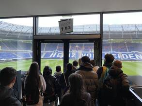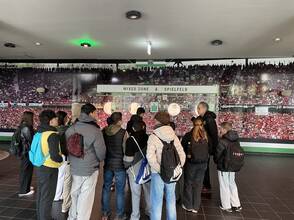 Werner, der Arena-Guide, war richtig nett und erklärte in der 90-minütigen Führung alles sehr spannend. Es wurde ihnen vom Rasen über den VIP-Bereich bis zu den Kabinen und dem höchsten Platz im Stadion alles gezeigt, inklusive Pressekonferenzraum und Schiedsrichterraum.