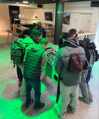 In der Pause durften die Schüler*innen eine kleine Runde Tischfußball im VW VIP-Bereich spielen. Die Kinder waren sehr interessiert und haben die Stadionführung genossen.